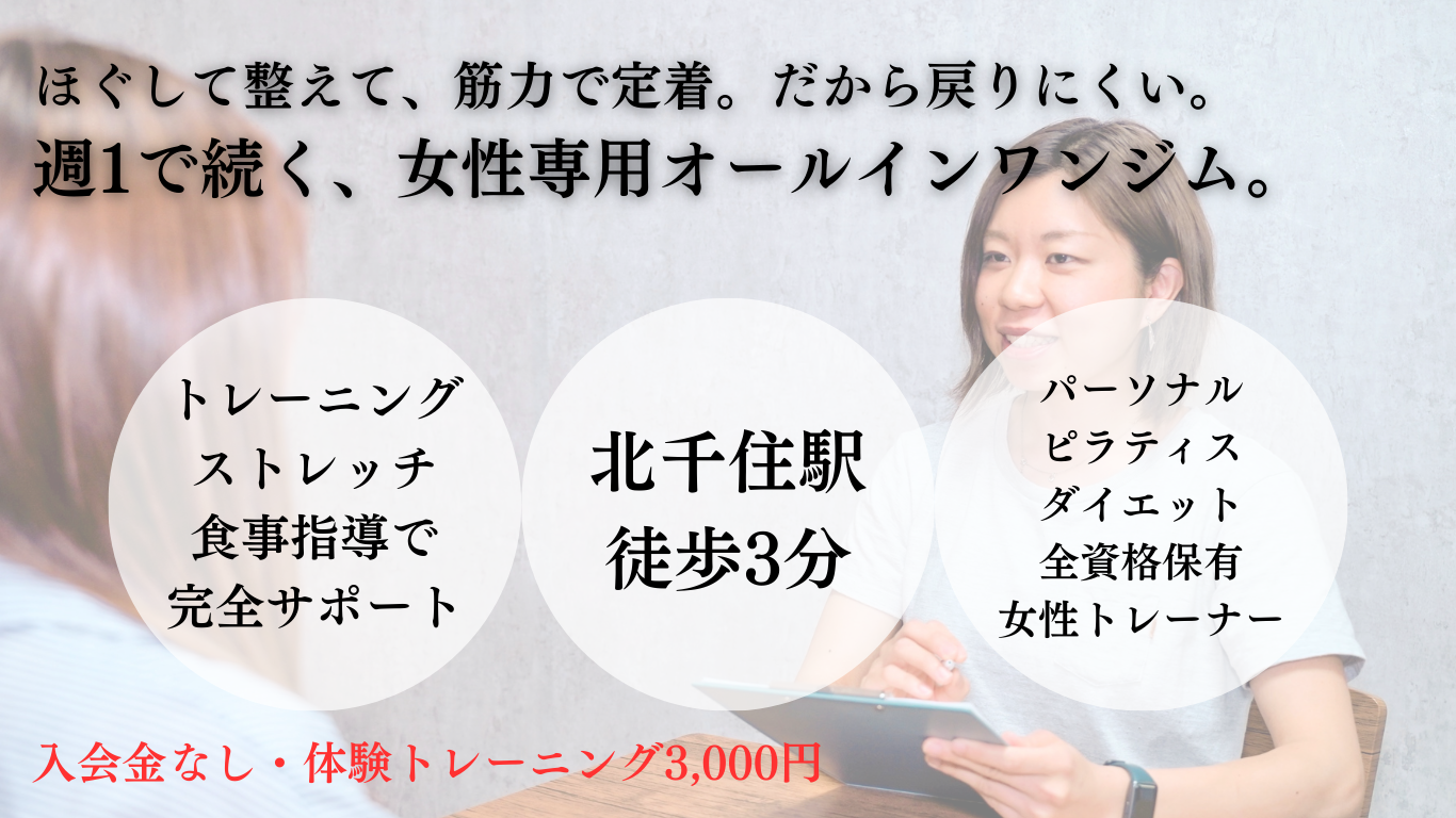 大手女性専用ジムにて店長経験を経て、北千住にジムをオープン。